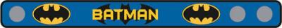 Die-cut rubber snap-on bracelet with a great design featuring the classic Batman symbol and the word "Batman". Bracelet features yellow lettering on a dark blue background.
