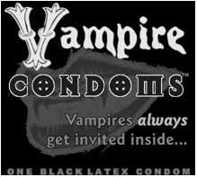 Vampire Condoms (tm) One fully functional black latex condom. Individually packaged in black matchbook-style container