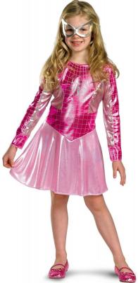 Some say she's the assistant to Spiderman, but she'll tell you that he's her assistant. Costume features a hot pink spider web pattern dress with long sleeves and light pink shiny skirt. Now she's ready to battle evil with good and come out on top, just as she always does.