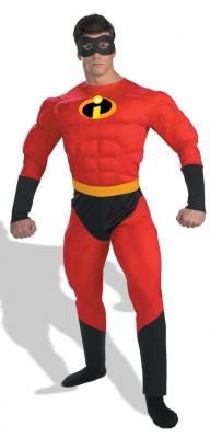 It's the animated creation superheroes from Disney/Pixar, The Incredibles. The movie tells the tale of a superhero family forced into witness protection. The star of this crazy caper, and the subject of this colorful costume, is Mr. Incredible. In Red, Black and Yellow, this outfit features a full muscle bodysuit and eye mask.