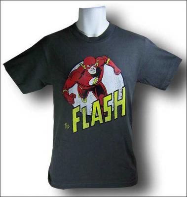 This is an awesome depiction of Barry Allen, The Flash, running, doing his Forest Gump impersonation. “Run Flash!! RUN!!†A very cool distressed image of the Flash on a dark gray t-shirt.