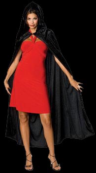 Long hooded cloak in luxurious black crushed velvet. Perfect for your vampire, gothic, or grim reaper costume! One size.