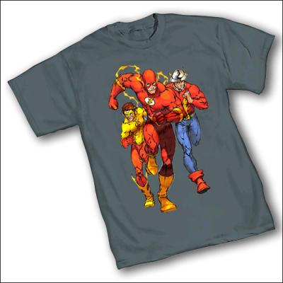 One of our newest shirts. The only shirt depicting all three Flashes, Barry Allen, Kid Flash and the Silver Age Flash