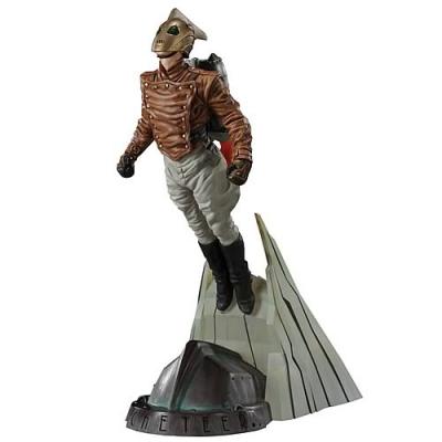 Electric Tiki's The Rocketeer Statue pays homage to author Dave Stevens and the Disney The Rocketeer movie in this one-of-a-kind, collectible statue. The Rocketeer is seen blasting off over a brushed-metal logo base, leaving a cloud of art deco smoke (evocative of the classic movie poster). The limited edition, resin statue stands about 16-inches tall and is approximately 1:6 scale. Each piece is hand cast in high-quality polystone and hand painted to exacting standards. Packaged in a durable foam interior and a beautiful full-color package, each statue is individually numbered for authenticity. Don't miss your chance to add the Rocketeer to your Classic Heroes collection!