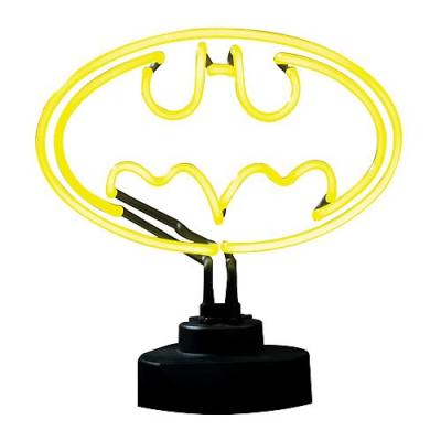 Decorate your room, home, or Batcave with this exciting, affordable neon sign featuring Batman's classic bat emblem! The adjustable base unit can sit on a tabletop or be mounted to a wall. Powered by a plug-in, UL-adapter, the sign itself measures approximately 12-inches tall x 7-inches wide and has a base measuring approximately 5 1/2-inches in diameter. Packaged in a 4-color box.