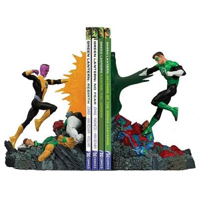 Let's hope they don't damage your books! Bitter enemies Green Lantern and Sinestro battle it out in these unbelievable bookends based on art from the hit storyline "The Sinestro Corps War." Inspired by the artistry of Ethan Van Sciver, this limited edition, cold-cast porcelain set includes a full-color certificate of authenticity and is packaged in a 4-color box. Each side is rife with color, detail, and action, and measures approximately 8-inches tall x 6-inches wide x 6-inches long. You'll never be hurting for action or a conversation piece with these on your shelf!