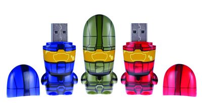 In celebration of the ultimate shooter, Halo 3, here comes the Halo mimoBot Series 1 Designer USB Flash Drives! Produced in limited edition and in conjunction with Microsoft and Bungie Studios, Master Chief, Red Spartan and Blue Spartan are now available in mimoBot form, each with a 2GB capacity preloaded with tons of Halo content, including the mimobot soundByte application, artwork, excerpts from the upcoming Halo novel, and a special episode of 'This Spartan Life.'