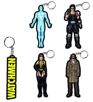 This Watchmen Rubber Keychains Set features the film's logo and four the film's characters - Dr. Manhattan, the Comedian, Rorschach, and Silk Spectre - on the danglers.