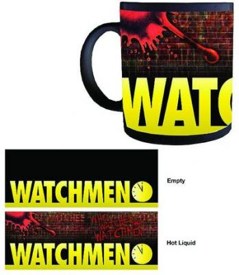Coffee and tea fans rejoice! These thermal mugs based on Zach Snyder's Watchmen film feature phrases and images that appear when hot beverages are added. Choose from the Film Logo which transforms into the blood-splattered brick wall, or 'Who Watches The Watchmen?' which becomes the iconic Doomsday Clock.