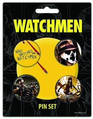 Look sharp with this lapel pin set featuring characters and phrases from the upcoming film, Watchmen, based on the best-selling graphic novel! Choose from 'Behind You,' 'The End Is Nigh,' or 'Who Watches the Watchmen?'
