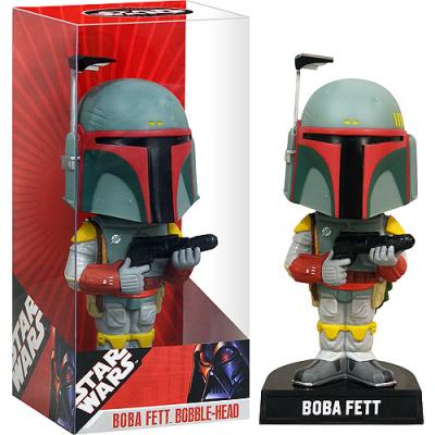 The most feared bounty hunter in the universe is now yours to bobble. Notorious for his massive arsenal of weapons and his tendency to off his targets, Funko's Boba Fett won't let you down. This bobble-head makes a great gift for Star Wars fans!