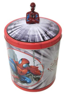 Marvel Spiderman Cookie Jar / Container. Measures 6" diam, 7" tall.