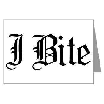 Give them a warning that you are likely to sink your pointy fangs into them with an "I Bite"From Ophelia's Art gift item.