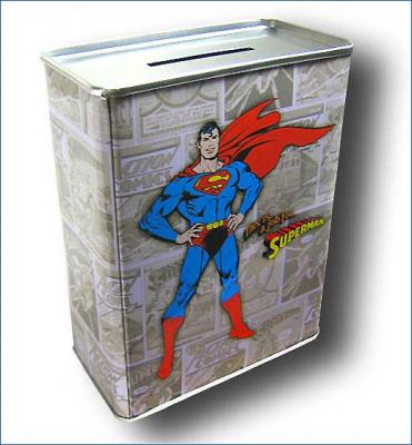 The Uber-cool, Superman tin bank is what every little kid needs... what with Social Security at risk, no pensions in the future and investments shaky, a Superman tin bank is going to be needed in every home.