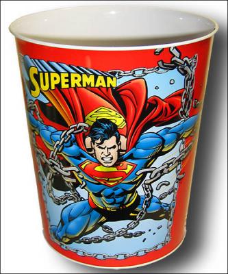 Faster than tall building, able to leap speeding bullets in a locomotive. This Superman Wastebasket is "da-bomb."