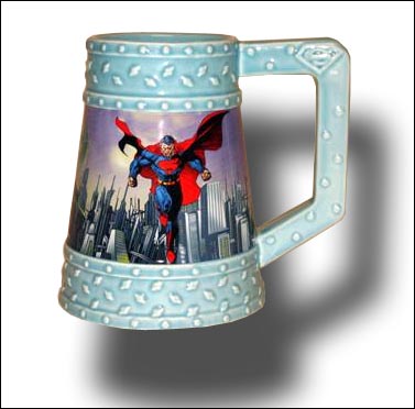 With an excellent image of Superman, artwork done by the master Jim Lee, this massive monstrosity holds over 18 oz. of liquid stuff! An excellent porcelain mug for any Superman fan, young, old or prehistoric.