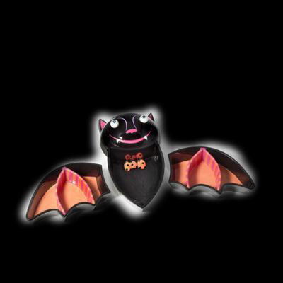 This bloodsucking vampire bat divided dish is a great way to display Halloween treats and snacks, 19 x 9.5" - packaged in a gift box from Glitterville. Made entirely of ceramic and hand painted.