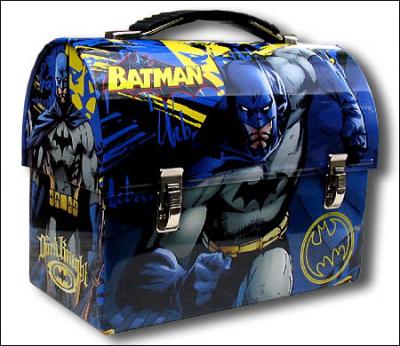 This is a small domed workman lunchbox, excellent for kids, but a little small for a grown man, but still an awesome image of Batman. The art work is done by Jim Lee, one of the most well recognized artists in comics.