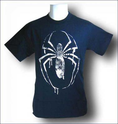 Here's Peter's very first attempt at creating his Spiderman costume. Yep, just a dark blue T-Shirt and a bottle of white spray paint that he found in Aunt May's kitchen, under the sink. Yep, it really happened. You're not remembering because Mephisto erased it from your feeble memory. Shawing! Bwa ha ha ha c ha cough, cough!!