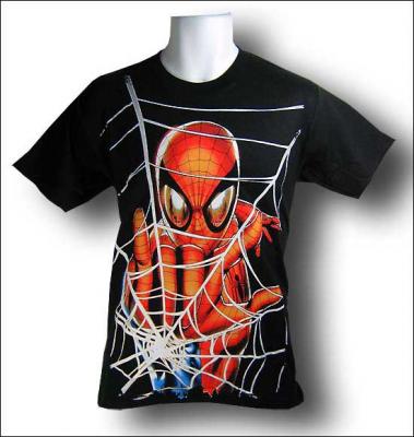 Thwippp!! Here's the adult version of the Spider-Man Jumbo Web T-Shirt, note: we also have this shirt on the Spiderman Youth Page. That is one big web, m'man. Crap. It's all over my shoes. Yuck!!