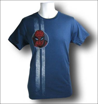 Here's A Spider-Man shirt for....the Race Fan? Here's a distressed head shot of ole' web head with ..stripes! It's got stripes! ZOOM ZOOM!