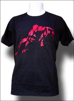 One of the coolest shirts that just came in. The image is a foiled (metallic) screen print of Spidey. Very cool.