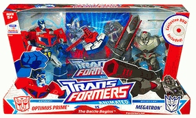 *Notes: Figures come with an exclusive DVD featuring “THE BATTLE BEGINS” episode from the TRANSFORMERS ANIMATED series!