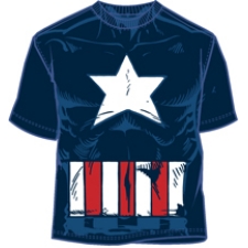 The Captain America shirt features a resemblance to the costume that the super hero wears in the comic books.