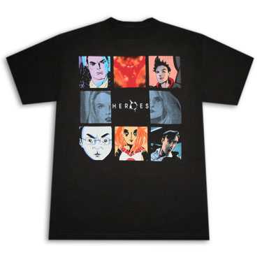Officially licensed Heroes Squares Black Tee Shirt. Features Heroes characters and logo on the front. 100% cotton.