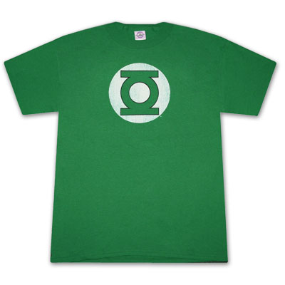 Officially licensed Green Lantern Distressed Logo Kelly Green T-Shirt. Features crackled Green Lantern logo in the center. 100% cotton.