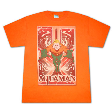 Officially licensed Aquaman Banner Orange T-Shirt. Features Aquaman design on the front. 100% cotton.