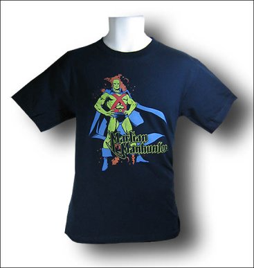 The Martian Manhunter t-shirt is the first of it’s kind. With a limited amount made and sold, you’ll want to get this one before the manufacturer decides not to make anymore. You gotta love the Oreo eaten hero. Dig them Pirate Boots! Arrg. He stole them from Captain America.