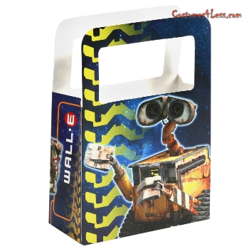 Package includes (4) paper treat boxes that feature Wall-E the robot holding a cooler in space. The side of the treat box reads "Wall-E". Measures approximately 5.5" wide x 7.5" high. Please Note: Treat Box handles are actually square and not round. This is an officially licensed Wall-E product.