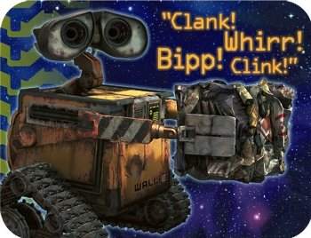 Package includes (8) die-cut paper thank you cards with 8 envelopes. The front features Wall-E in space with the saying "Clank! Whirr! Bipp! Clink!" Inside reads: "That's robot speak for Mission Accomplished! Thanks for helping make the party out of this world!" Measures approximately 5" wide x 4" high. This is an officially licensed Wall-E product.