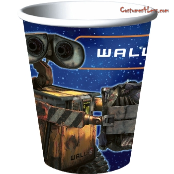 Includes (8) 9 oz. paper cups that feature Wall-E in space. The cup reads "Wall-E". This is an officially licensed Wall-E product. (c) Disney/Pixar.