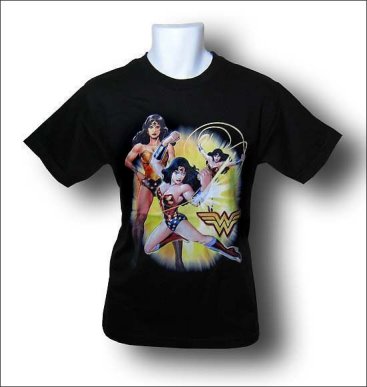 Here's a black Mens T-Shirt featuring Wonder Woman posing, lassoing and deflecting your tasteless comments...all on one Wonder Woman T-Shirt! Made from 100% Cotton, this Wonder Woman T-Shirt gives you three times the Wonder Woman at one times the price. Yep, one times!