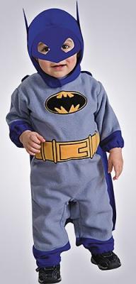 Behold, the mighty Dark Knight in training! The Brave and the Bold Batman baby costume features a romper with attached cape, sewn-in Batman logo and belt. Headpiece contains Velcro closure. The Brave and the Bold Batman Costume Baby includes: