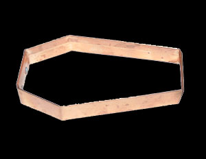 This is a copper cookie cutter shaped like a coffin. Make a batch of these and send them off in one of our coffin gift boxes. Sure to be a hit at your next party!