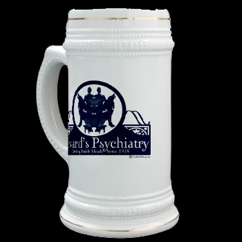 Need some help figuring out what's in your head? Never fear - Edward is here! And he's been "Getting Inside Heads Since 1918". This design comes complete with a custom Rorschach test in it. Heft a cold one in this 22 oz. ceramic stein with gold trim. A great "usable" alternative to the trophy. Make any day Oktoberfest whether with this impressive stein on the shelf or in-hand. Cheers!