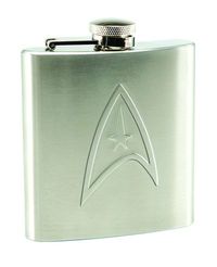 Carry Romulan Ale or Saurian Brandy with you wherever you go with the Starfleet Logo Flask. This stainless steel flask features a secure screwtop lid and an etched Starfleet delta emblem. Packaged in a gift box, this flask is the perfect gift for the Star Trek fan in your life.