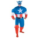 Experience your own Super Soldier Serum in this inflatable Captain America costume. Includes an inflatable muscular jumpsuit with classic stars and stripes detail, fabric mask with "A" and wing details, "AA" battery-operated air-inflating fan.