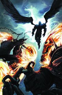 In one corner, we have the Ghost Rider brothers, Johnny Blaze and Danny Ketch. In the other corner is Zadkiel, the renegade angel. And before the battle is through, you can rest assured that blood will flow on the golden streets of heaven. And no matter who wins, will it mean the end for America's favorite Flameheads?