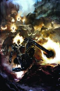 'The Last Stand of the Spirits of Vengeance' kicks into high gear! With Zadkiel and his army on the verge of conquering heaven itself, a force is gathering to oppose them, a group unlike any we've ever seen. But will their ranks include Johnny Blaze or has he given up the fight once and for all? Find out for yourself in this exciting new ###-kicking installment of the red hot GHOST RIDER!