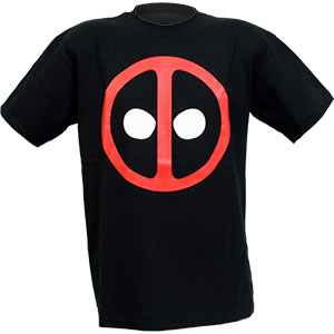 Proudly wear the symbol of the "Merc with the Mouth" with this Deadpool logo t-shirt! This 100% cotton black t-shirt features Deadpool's black, red and white symbol on the front. Available in adult sizes.