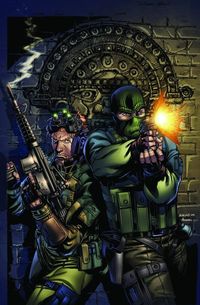 This month only, G.I. Joe is shipping two issues two weeks apart! Artist Robert Atkins returns to the book to begin an all-new storyline where Tripwire joins the team. But his first mission may be his last, as Tripwire and Beachhead are trapped inside an ancient Mixtec ruin with an army of narco-terrorists hunting for them.