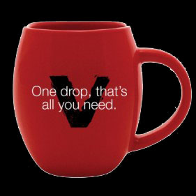 "V: One drop, that's all you need'', and what better way to start your day than with the True Blood V-Mug. Our signature 14 oz blood red ceramic mug features the True Blood logo on one side and ''V: One Drop, that's all you need on the other''. Whatever your beverage of choice, drinking from this mug is bound to be good to the last drop.