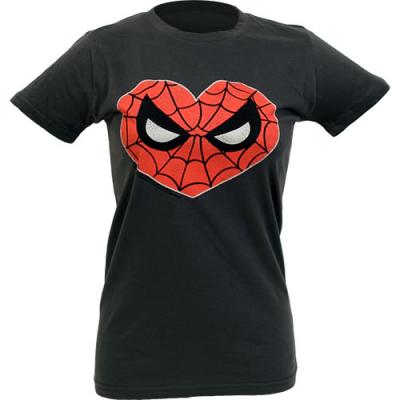 Show your Spidey love with this Spider-Man "Heart" t-shirt. This super soft, gray fitted vintage style t-shirt features a heart-shaped image of Spiderman's face. Available in Women's sizes. Please note: this women's shirt is a trim style that runs small. Order one size larger than usual or consider a traditional cut adult shirt.