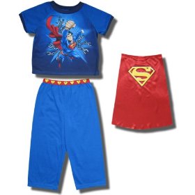 Made of 100% flame-resistant polyester these pajamas feature an image of Superman breaking chains of steel and also have a detachable capepolyester