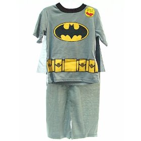 This Batman 3 Piece Pajama Sleepwear Set is perfect for your little superhero who can't get enough of the Dark Knight!! The 3 piece set is black & gray and includes a short sleeve shirt, pants and a cape. The sleepwear set is a replica of Batman's actual suit!! The shirt features the Batman symbol in the center, and his utility belt toward the bottom. On the back, there are 2 velcro strips holding on the black cape - which also has the Bat symbol on it!! The pants are plain gray with the Bat symbol at the waistline. This sleepwear set is as close to Batman as you can get without the crime fighting and saving the world!! Go to sleep with Batman and Gotham City on your side! Recommended Age Group - Kids Boys