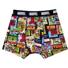 These 95% cotton/ 5% spandex boxer briefs for men feature the Marvel Comics Super Heroes in a colorful collage of comic strip action. Machine washable with exposed Marvel elastic waistband.